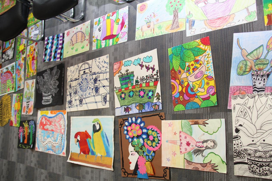 評(píng)審當(dāng)日,所有參賽畫作鋪滿了整個(gè)評(píng)審廳,連挪腳走路都很困難,五顏六色的繪畫作品也讓整個(gè)評(píng)審廳充滿了生機(jī),孩子們獨(dú)特的創(chuàng)意和不凡的繪畫功力也使得評(píng)委老師贊不絕口。