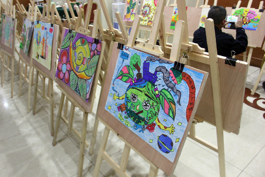主辦方還將44幅優(yōu)秀作品裝裱之后進(jìn)行展示,看著作品上孩子們各種奇思妙想以及對于環(huán)保問題的思考,家長們也都紛紛感嘆:感謝主辦方組織這次活動!孩子們的世界是最真實(shí)的,我們應(yīng)該更加重視環(huán)境保護(hù),給孩子們一個(gè)健康的生長環(huán)境,還孩子們一片藍(lán)天白云!