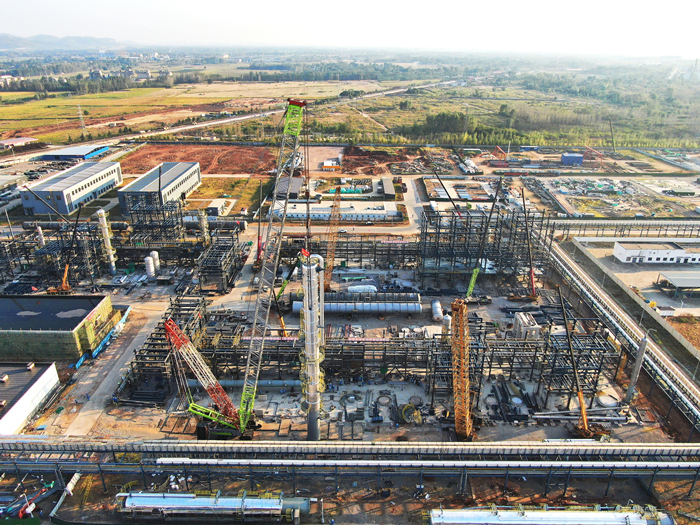 碳酸酯項目計劃今年年底建成中交,此次T-505 EMC精制塔順利安裝就位,為加快項目總體施工進度創(chuàng)造了有利條件,實現(xiàn)了“穿衣戴帽、塔起燈亮”的模塊化安裝目標,后續(xù)多臺大型設備計劃將在1個月內(nèi)陸續(xù)完成吊裝。