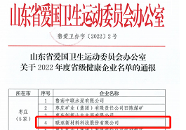 聯(lián)泓新材料獲評(píng)山東省“2022年度省級(jí)健康企業(yè)”